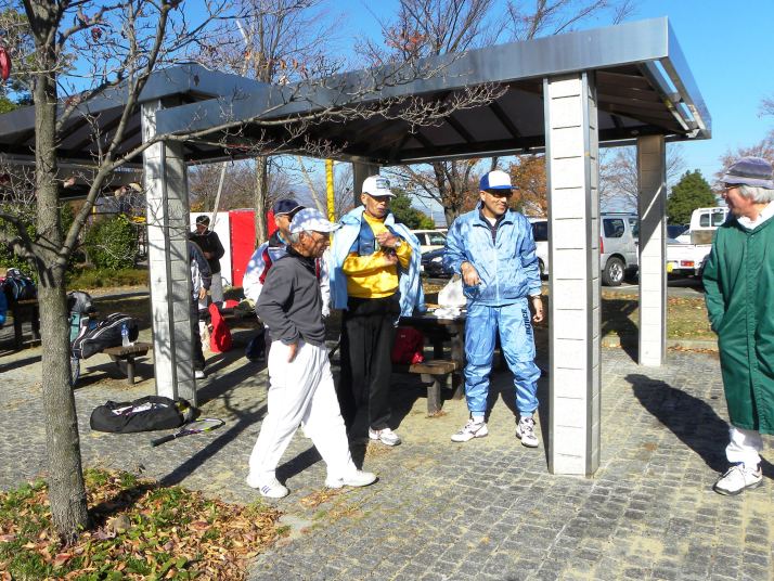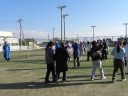| 明けましておめでとうございます。今年も楽しくやりましょう。 2012年1月8日(日)の様子です。11名が参加しました。 寒風の中、半袖の人もいますよ!気合が入っていますね。頑張りましょう。 (クリックすると大きくなります。) |