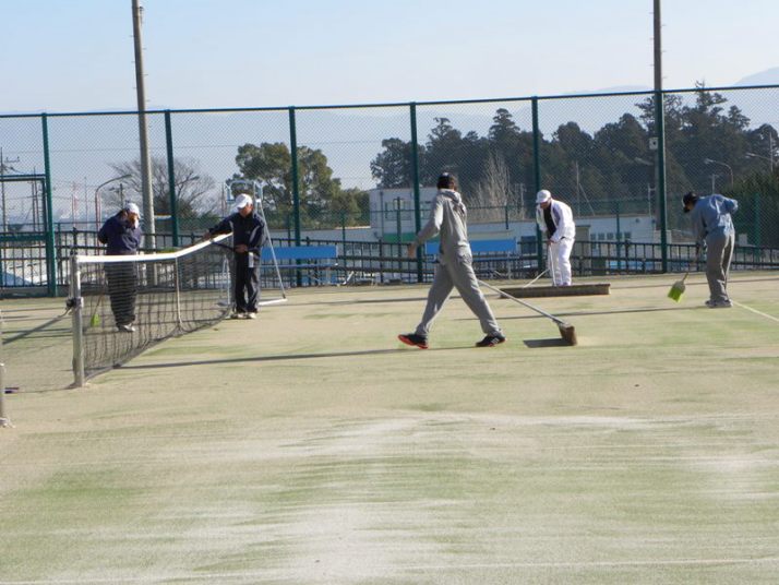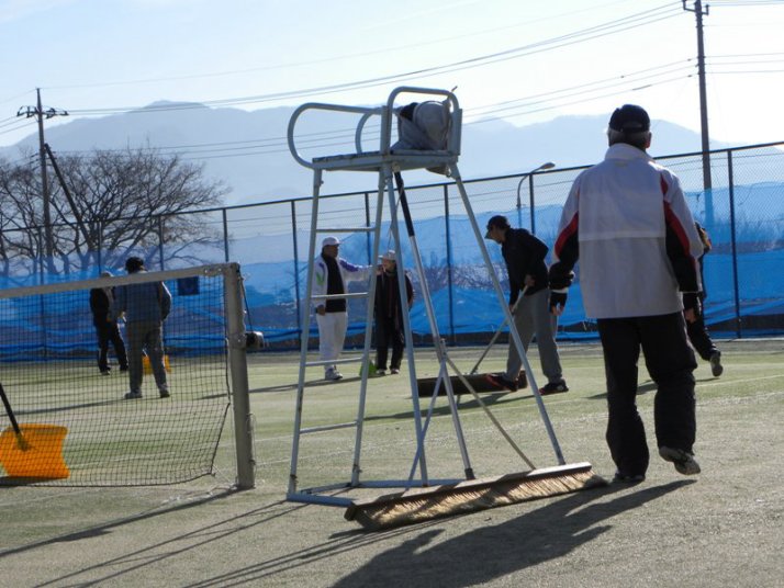 | 2016年1月3日 お正月恒例の”コート整備”と“初打ち”の写真 です。 ごくろうさまでした。 |