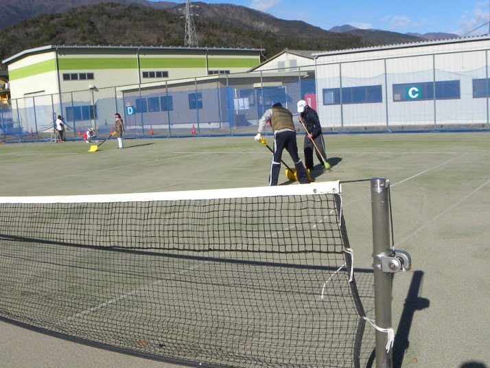 | 2020年1月3日 利根川公園テニスコートの整備(ネット張替ほか) を行いました。 参加の皆さんにはご苦労様でした。 |